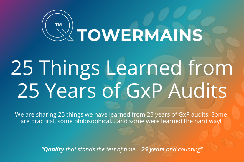 This month, as part of our 25 Years of Tower Mains series, we are sharing 25 things we have learned from 25 years of GxP audits. Some are practical, some philosophical… and some were learned the hard way!